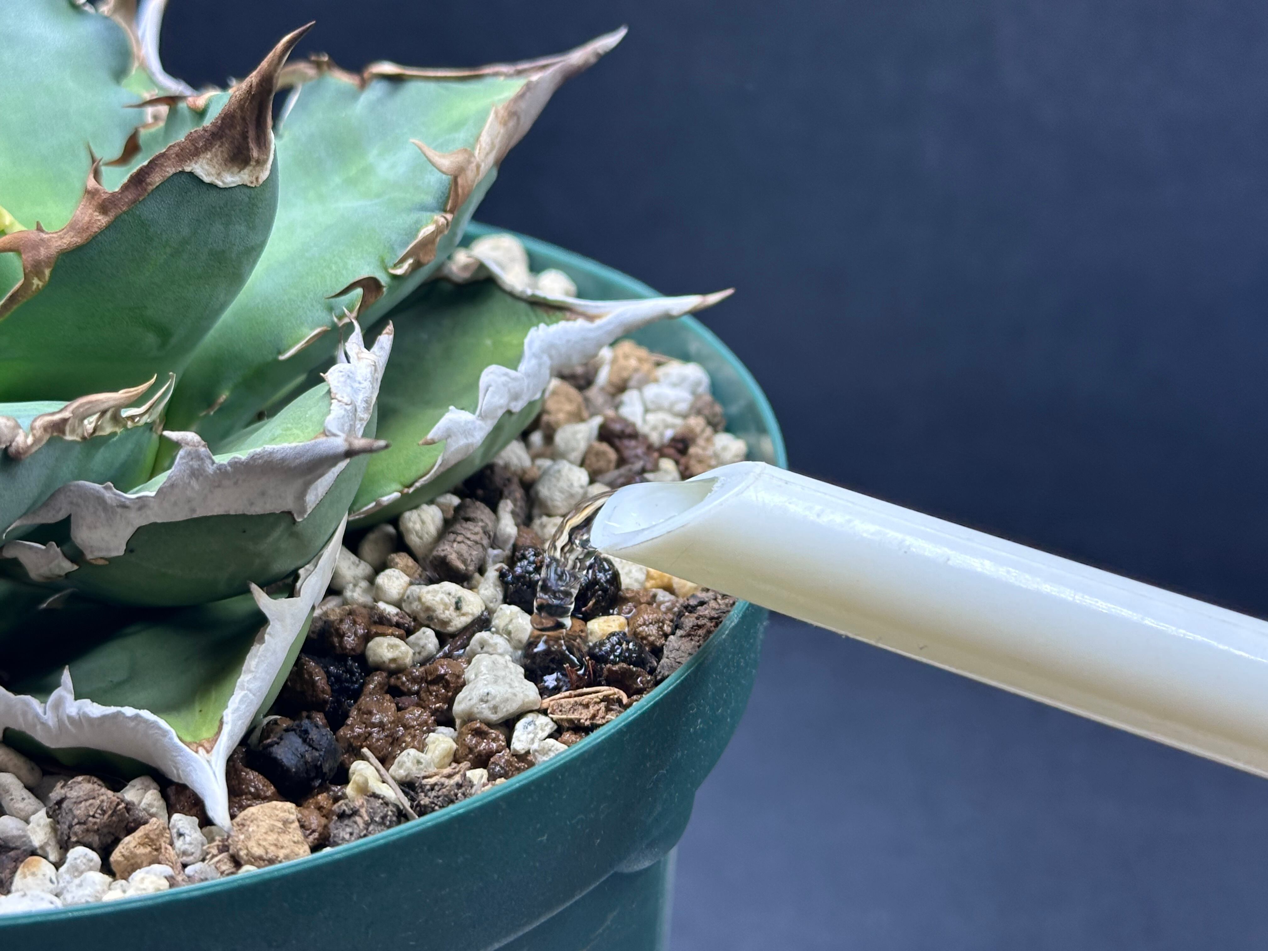 ④植物の葉に極力掛からないように、表土全体が湿 潤する程度にジョウロ等で灌水する。