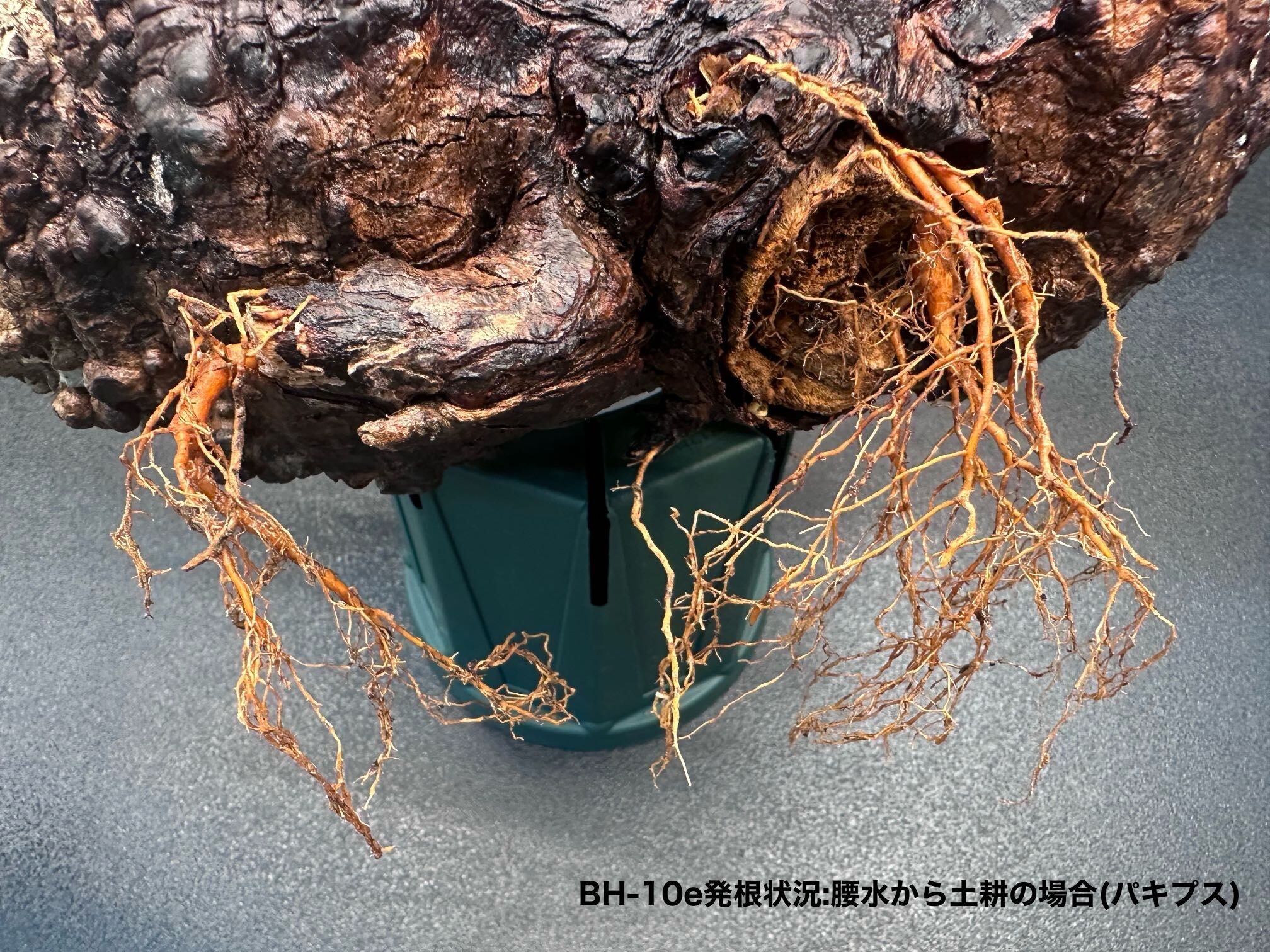 高い確率で発根に導くBH-10eと、直接影響力が高く即効性の直塗布型のSA-ROOTSと組み合わせる事で相乗効果が倍速し、特に不活から戻りにくい難発根種や塊根灌木の早期の発根に効果的な今までの概念にない、段階的に異種の成分によって強力に発根を促す発根管理法になります。